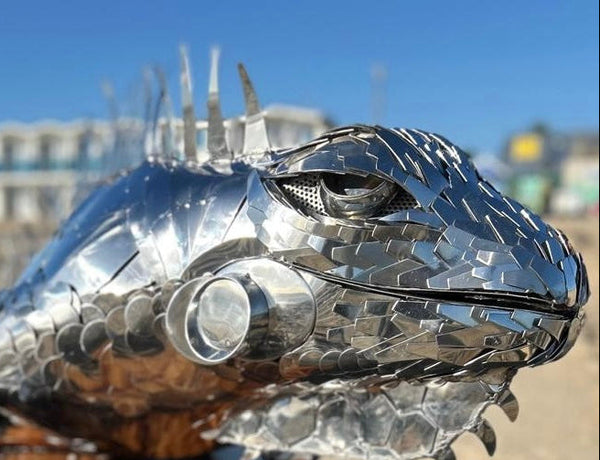 I work primarily with recycled stainless steel, with around 95% of the material I use coming from reclaimed sources. Choosing recycled stainless steel significantly reduces environmental impact while still offering exceptional strength, durability, and resistance to corrosion, making it ideal for outdoor sculptures.